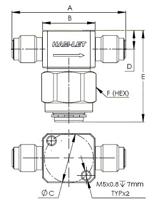 H600 Series, SS T-Type Filter, 1/4” Male Face Seal x 1/4” Male Face Seal