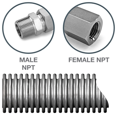 SHE024MP11/2FP11/2, Extra Flexible St.St 316L Hose, Male NPT 1-1/2” x Femal NPT 1-1/2”